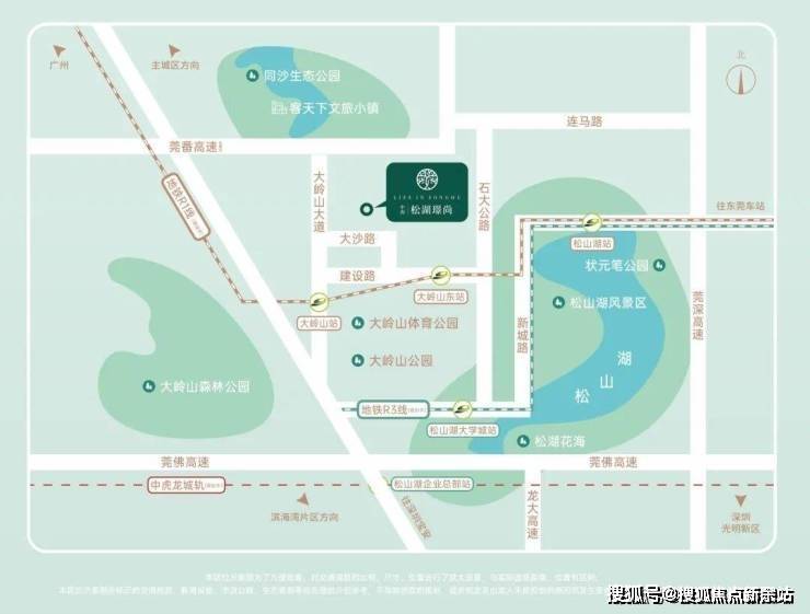 新城中芯:大岭山镇以“与松山湖一体化”为首要目标,重点规划“一心二轴三带四站五组团”,本项目位处中心组团之上,距离新城中芯R1线(在建中)大岭山站约1.4公里,雄踞两大发展主轴之一大岭山大道旁,率先享受松岭融城发展辐射。