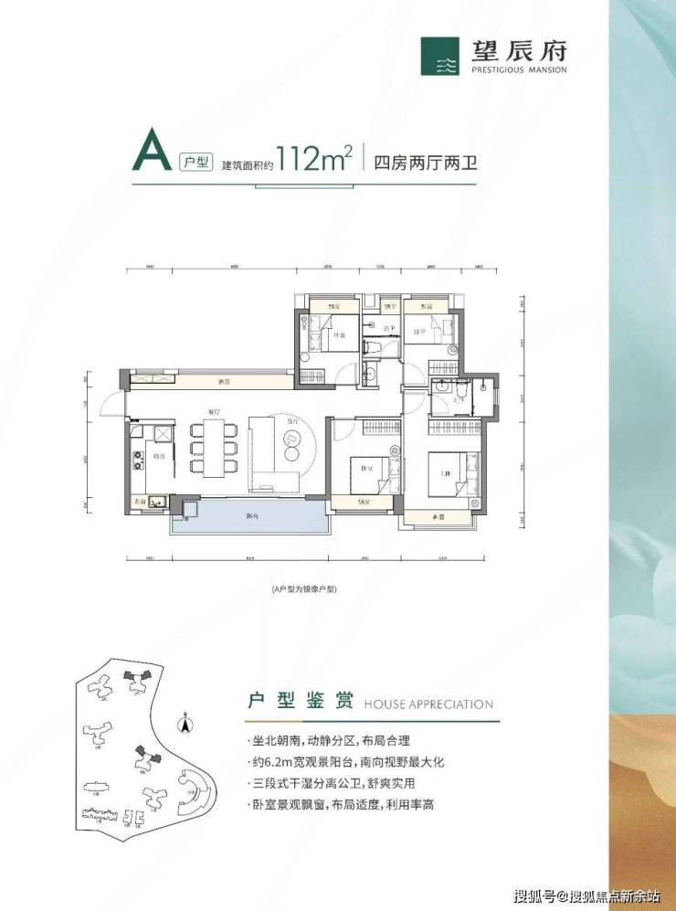 A户型,约112㎡4房2卫