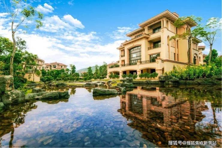 建筑外立面采用新古典欧式建筑风格,运用朱砂暗红和黄色为主色调,欧式别墅用材用料均采用进口高档石材,打造沉稳、大气、高贵的墅质形象与皇家气度。产品主要为独栋别墅和双拼别墅,楼间距在30-50米之间,私密性极强,是湾区罕见的低密度豪宅别墅区。