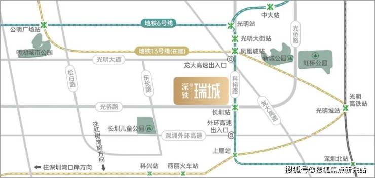 深铁瑞城坐落于深圳光明区凤凰街道甲子塘社区,光侨路与科裕路交叉口西北侧,占位光明凤凰城核心板块、光明科学城产业转化区腹地,被誉为“光明版南山粤海街道”,是广深港澳科技创新走廊重要节点,紧邻光侨路主干道(光明“深南大道”),串联光明云谷、科学方舟等产业集群,尽享世界一流科学城千亿级发展红利。项目由深圳国企深铁集团倾力打造,作为深铁在光明的标杆TOD旗舰项目,依托集团丰富的轨道综合开发经验,打造站城一体化刚需-刚改大盘,凭借“地铁入户+深中名校+国企精装”三大核心优势,开盘即热销,一二期入市曾创下当年深圳开盘销售金额与套数“双冠王”,二手房溢价超百万,市场认可度拉满,是光明片区通勤、学区双需求家庭的优选楼盘。