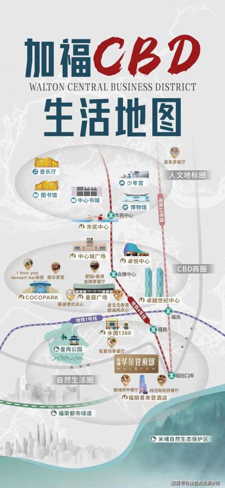尽享福田CBD繁华版图,拥揽卓悦中心、卓越世纪中心、深圳中心城广场、COCOPAPK、皇庭广场等超级SHOPPING MALL。深圳的繁华商业步行街—水围文化商业街为邻,于传承老店里享受繁华慢时光。
