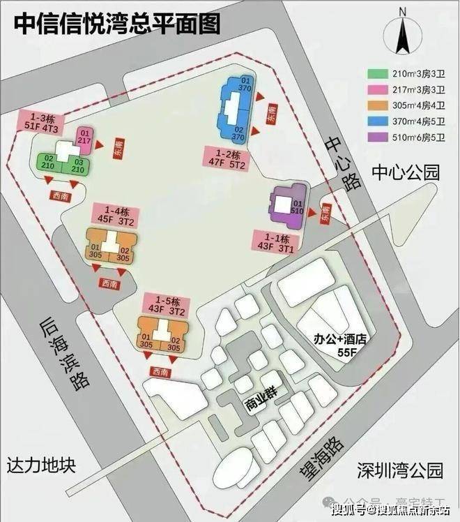 中信元湾府(原中信深圳湾)位于南山蛇口望海路与后海滨路交汇处,总占地约4.4万㎡,总建面31.8万㎡,容积率5.5,规划5栋超高层住宅+酒店+商业+办公,是深圳湾罕见的综合体豪宅。