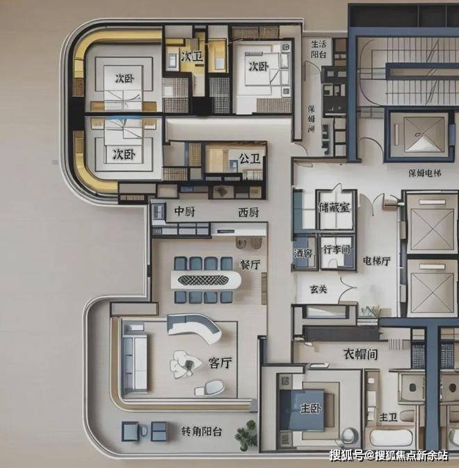 4梯3户:高效配置,保障出行便利。为追求品质生活、青睐核心地段与绝佳视野的新贵阶层,提供了更具性价比的入场券。