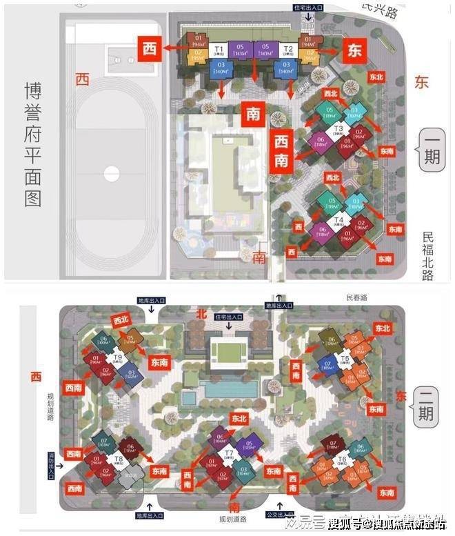【鸿荣源博誉府】共9栋,一期T1-T4,二期T5-T9栋,共1758户(一期772套,二期986套),有82套保障性住房,二期有约85-126㎡3-4房。