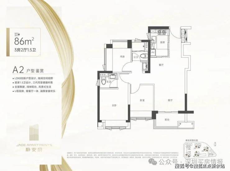 静安府于龙岗街道玉岭路与楼岭路(规划路)交界处。总建筑面积13.8万㎡,规划建设5栋住宅,总户数1050户其中商品房920户,保障房130户。套内面积≤90㎡共990户,占比约94%。小区配建一所1600㎡幼儿园。
