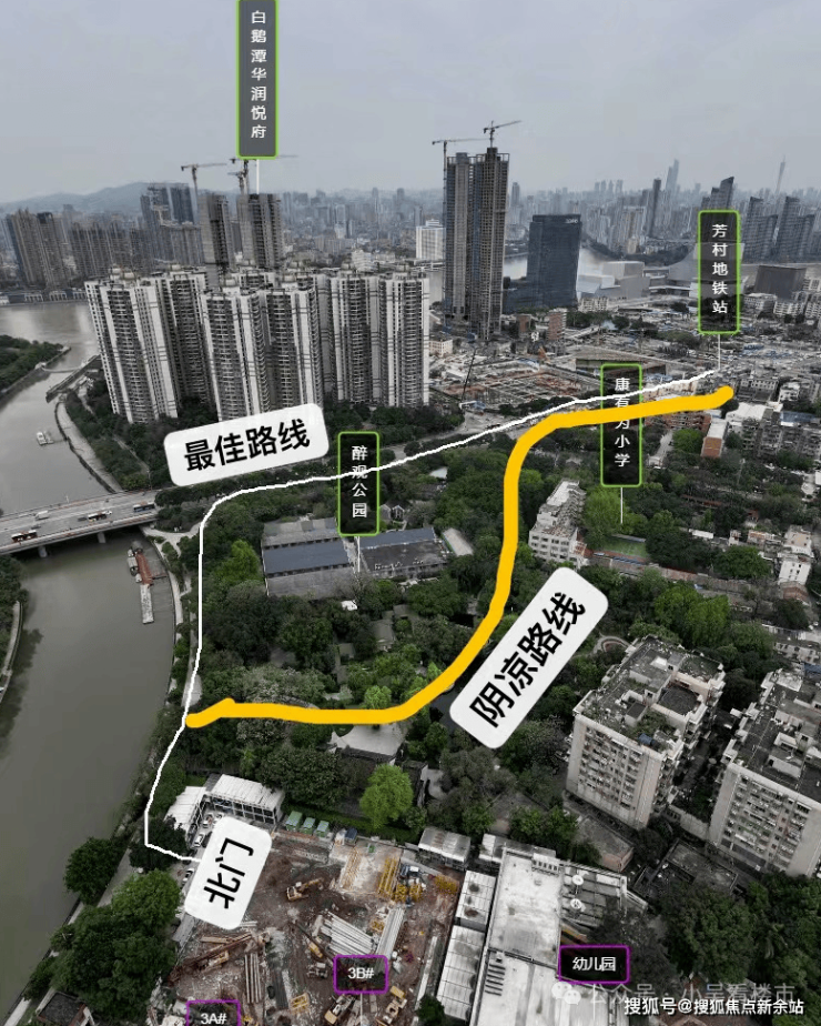 如果后期收楼后,从东门走去地铁站,绕醉观公园背后出来,大概738米,如果想要阴凉,可以走公园里面穿过去,出来过个马路就到了华润,还是能够接受的,芳村现在通的是1号线和11号线,未来还有26年和22号线,保底三地铁交汇,销售说还有一条跨城去佛山的28号线在招标了,地铁价值还是大的。