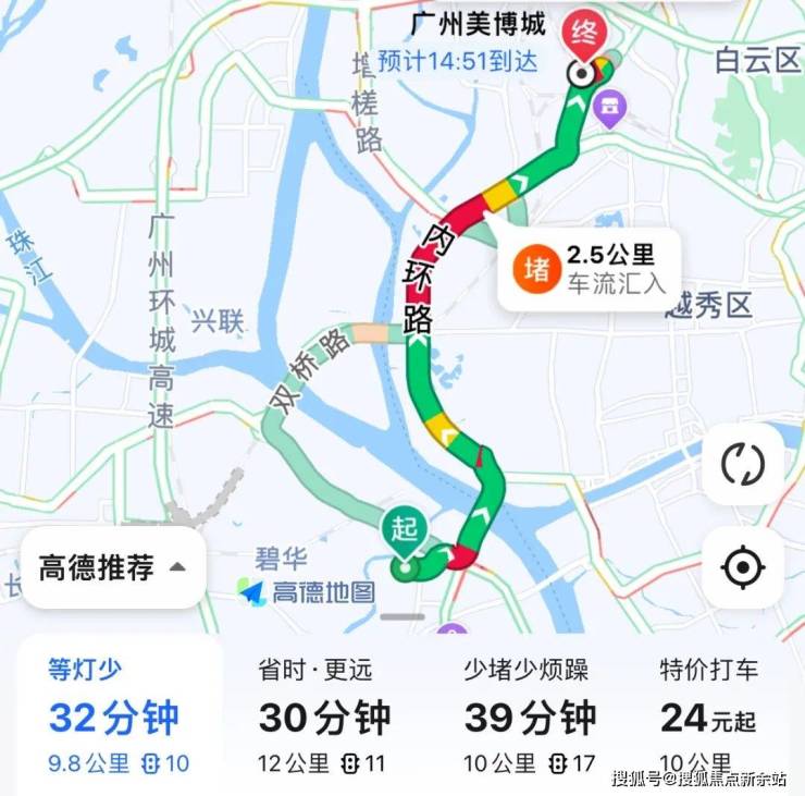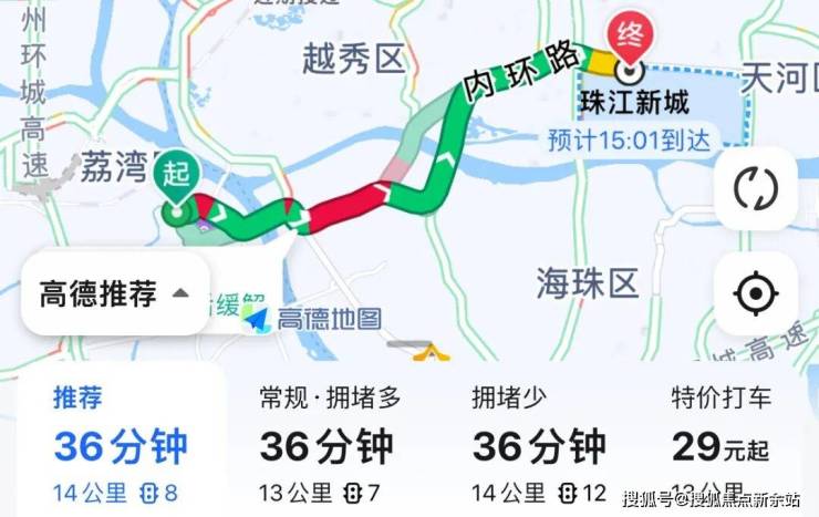 自驾去珠江新城:芳村大道转洲头咀隧道,再上内环,全程14公里,耗时36分钟左右。