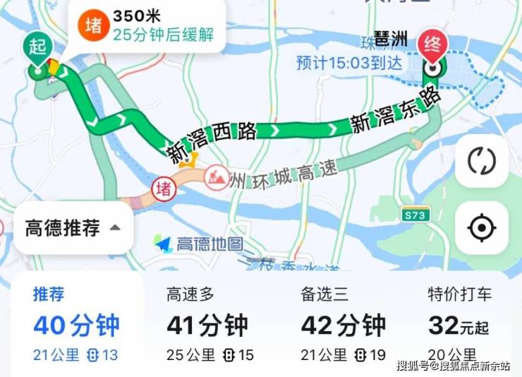 自驾去琶洲:芳村大道转鹤洞桥,再转工业大道至新滘路,最后转科韵路,全程21公里,耗时40分钟左右。