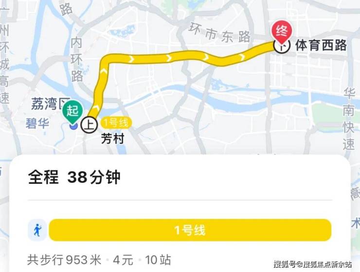 地铁去往珠江新城:步行至芳村站,乘坐1号线直达体育西,全程10个站,耗时38分钟左右。