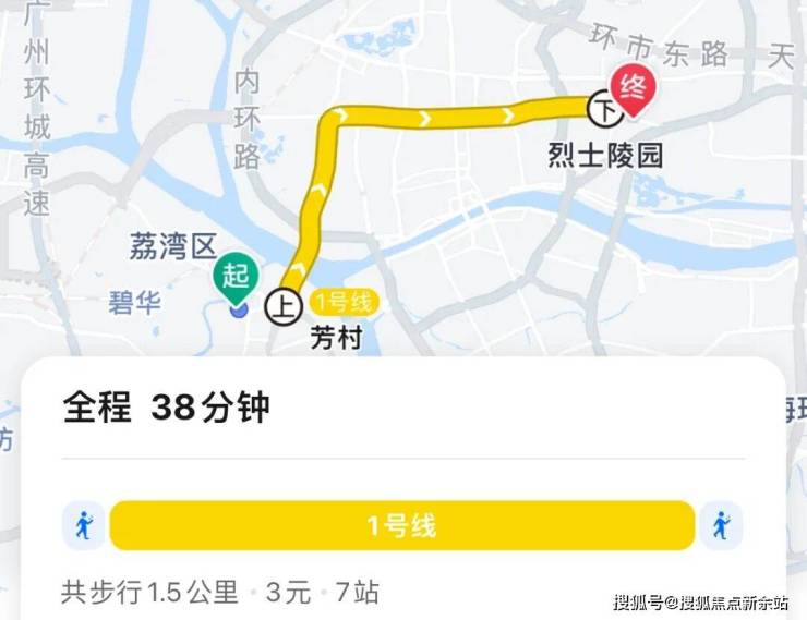 地铁去往省人民/中山大学附属医院:步行至地铁站,乘坐1号线7个站到烈士陵园,全程耗时38分钟左右。