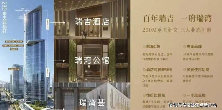 项目33-50F为瑞吉酒店,5-31F瑞湾府目前在售190-360㎡酒店式行政公馆,层高4.4米。