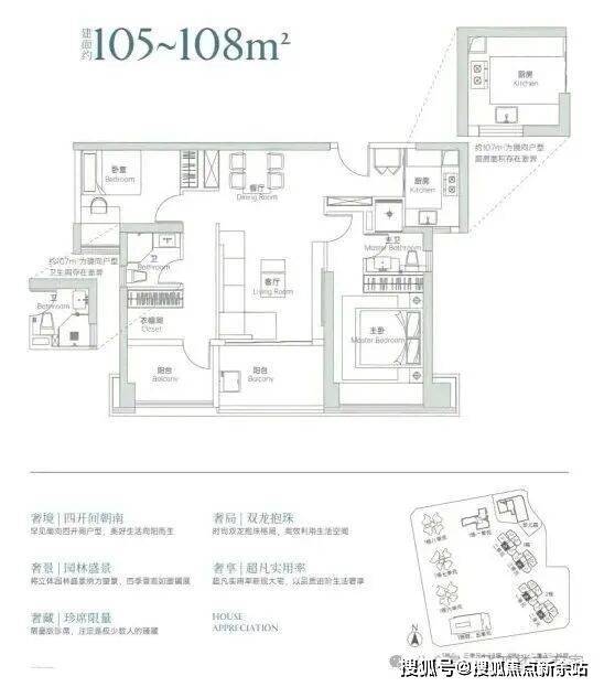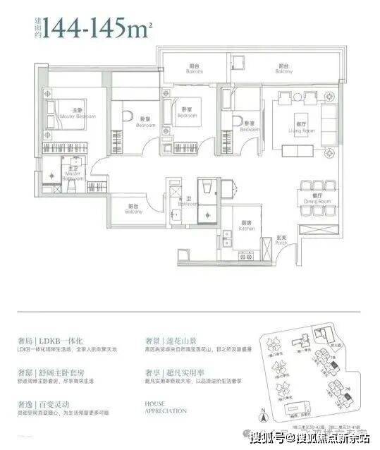主力户型配备了“弹性方厅+环幕主卧+三面采光”的设计,不仅空间利用率高,居住舒适度也得到显著提升。