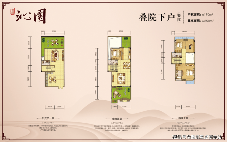 上叠院:产权面积170/223方,顶层有个超大的多功能空中花园,可聚会、休闲、赏月、品酒、烧烤、种花草…
