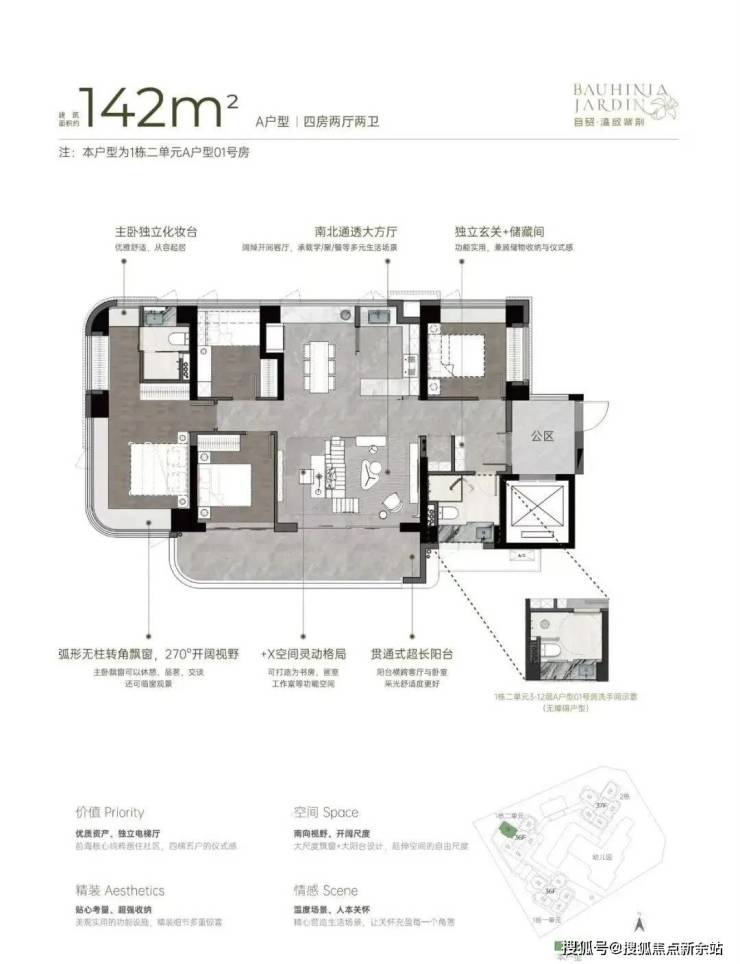 户型采用建筑新规设计,建面约96-142㎡,户户大阳台