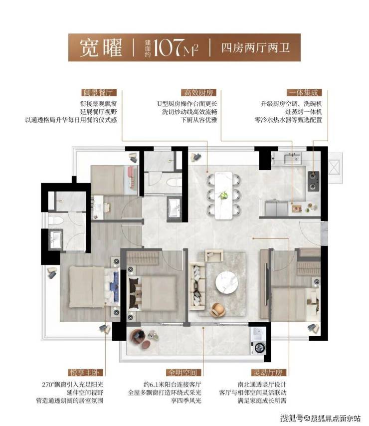 3. 新规高得房率约90%,户型实用,全南向布局,空间利用率领先同片区;