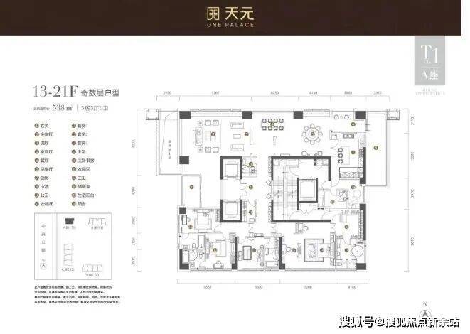 T7王座总裁公寓 【T7-01户型鉴赏】约393㎡四房三厅六卫