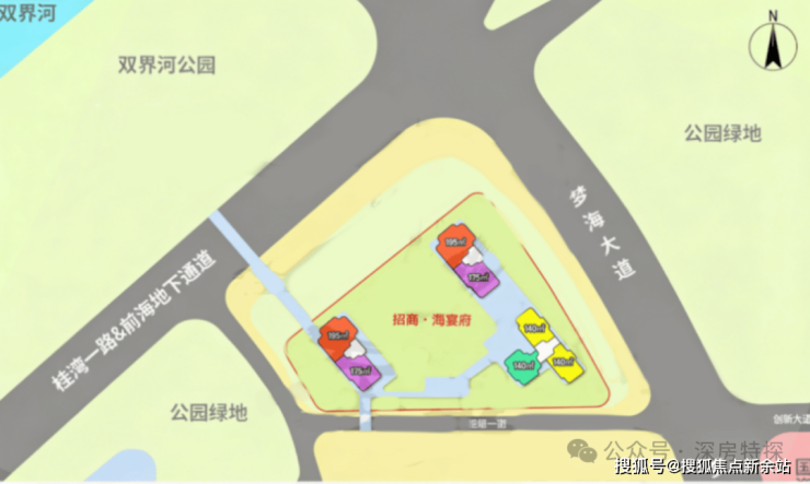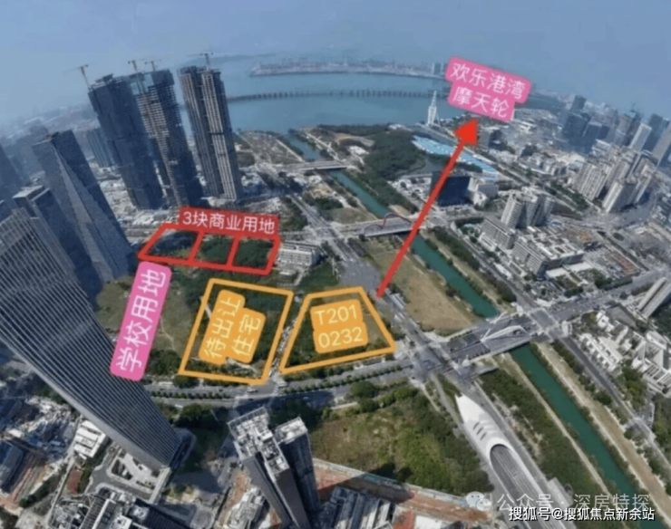 地块紧挨深业前海湾、天健悦桂府,与宝中仅隔着一条双界河,直线距离 1.1 公里外就是前海湾和欢乐港湾摩天轮,开窗即见 “湾区风景线”!