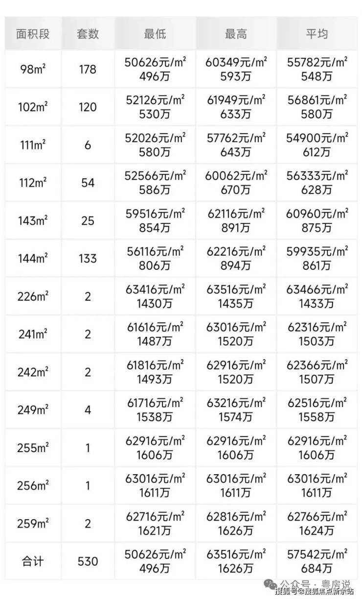 折后均价5.22万/㎡,折后单价4.58-5.72万/㎡,其中3房总价530万起,4房总价543万起,6房总价1212万起。