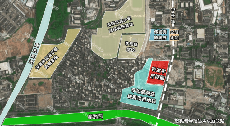 特发学府朗园,位于光明区公明街道李松萌炮台路与志康路交汇处,处于李松蓢利益统筹项目地块中,项目将结合“产城融合、以人为本、低碳生态”的规划理念,重点关注产业升级发展、居住品质的提升、生产生活配套服务优化等方面,预计总投资额约100亿元,成为茅洲河畔百万平方米产城融合的超大型宜居宜业社区。
