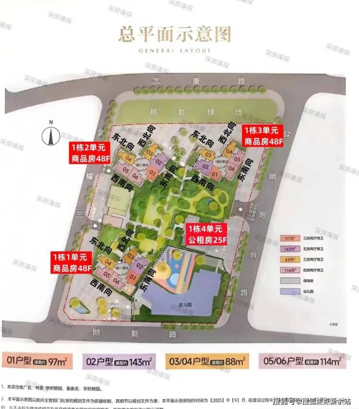 特发学府朗园,由特发集团开发,总占地面积约2.1万㎡,总建筑面积约15.2万㎡,计容建筑面积约11.4万㎡,容积率5.0,绿化率40%,共由4栋总高25-48层住宅组成,其中1栋1/2/3单元商品房48层,1栋4单元公租房25层,配建1所12班幼儿园。