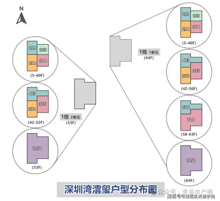 · 超高区58F起(200米以上)是约500-700㎡顶级大平层;