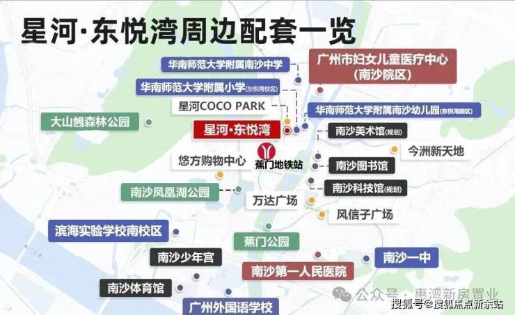 星河东悦湾号称南沙配套之王,学铁商医样样齐全,位置在南沙最中心,是南沙区府旁唯一在售综合体。 小区配建华师附小、华师附中、华师附幼(已开学)和9.7万㎡coco park商业体。