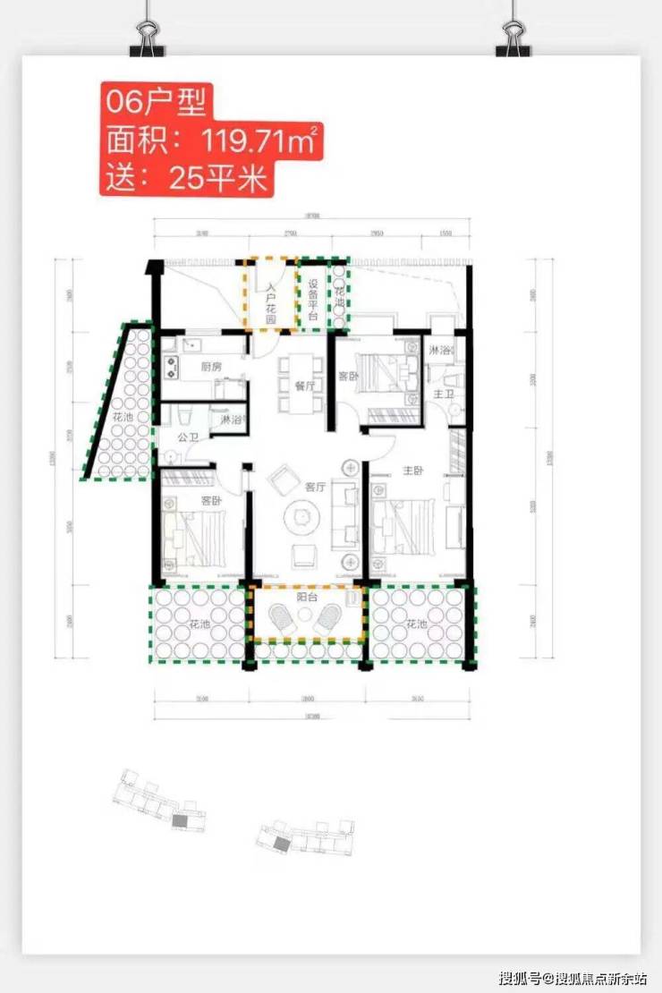 7号房,3房2卫:约120平送19/25平(总价780万-939万)