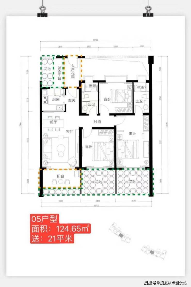 6号房,3房2卫:约124平送21平(总价713万-895万)