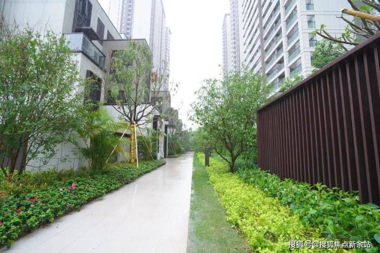 而墅区景观真正做到了“让自然参与设计”。庭院入口两侧绿意相迎,归家的仪式感油然而生。精致入口叠水景墙,花开缤纷,水雾氤氲,一副“山水天成”的画境景色倏尔出现在眼前。移步换景之间,眼前豁然开朗,外面的绚烂风光引人追逐,踏入墅区,宁静舒畅即刻回归内心。