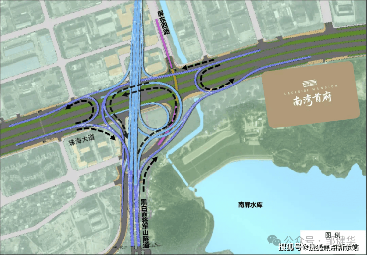 向西,经珠海大道直达西区,未来经开通的立交-黑白面将军山无缝衔接洪鹤高速快达金湾;