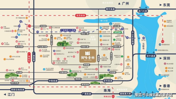 通达则地盛,地盛则繁华。御峰香林临近中山路与博爱路两大城市主干道,极速往来全城各处。项目直距深中通道博爱路出口约2.5KM,3KM范围内汇聚广州地铁18号线两大站点,未来约20分钟速抵广州南沙,约45分钟即达珠江新城,尽揽深广繁华都会。