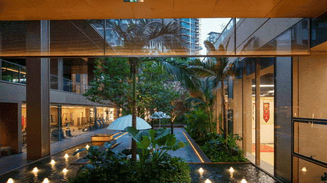 为了更胜一筹的景观视野,德胜天汇首创地块抬高约3米设计,提升居住的私密感和尊贵感。这种细致入微的设计考量,还贯穿在层进式归家动线中。从宝格丽酒店港湾式无风雨落客区、星级大堂入户,到雅奢庭院等六进归家礼序,层层递进,移步异境,完美呈现了艺术和美的追求,每一处都是高定生活的仪式感。