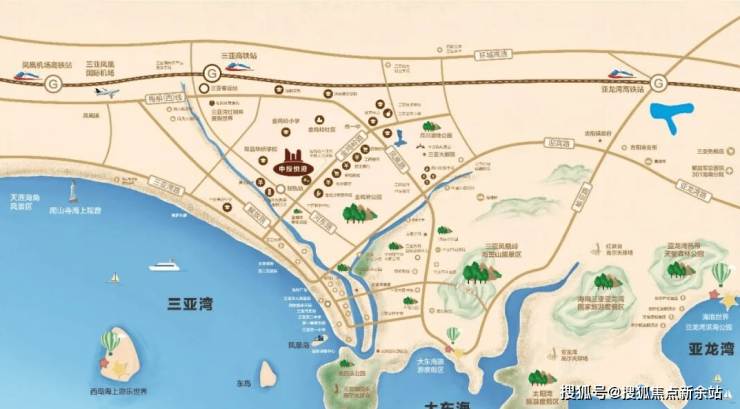 商业配套:楼盘周边 3km 范围内有 17 个商场,包括万悦新天地、青春颂广场、三亚夏日站、HiPlace 天悦城、三亚大悦城等购物中心,商业配套成熟,完全可以满足日常购物需求。