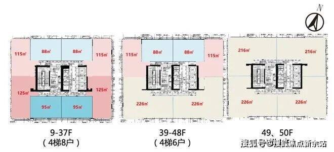 •建筑形态:194米超高层塔楼,共50层,分为低区(9-38层)、高区(39-48层)及顶层(49-50层),梯户比从低区4梯8户到顶层4梯4户逐级优化。
