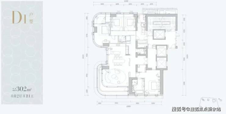 302-307㎡是项目主力户型,也是套数最多的,共计152套。3梯2户,全部朝西南。