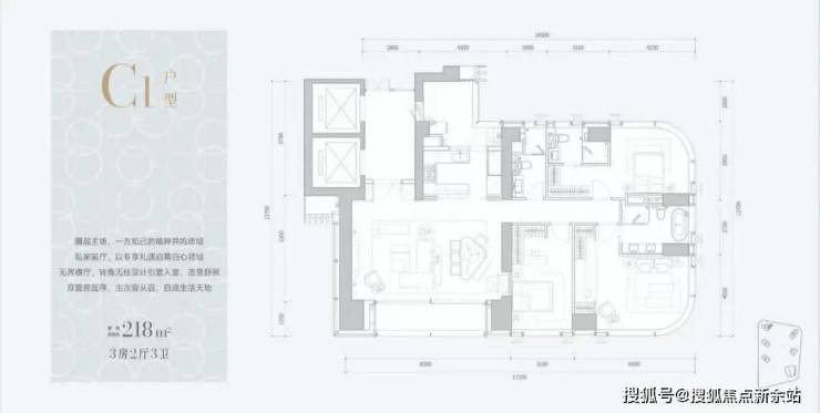 这个户型是项目面积最小的,也是唯一阳台不是L形,最低3000万准入门槛。3梯3户,1户朝东南、2户朝西南。