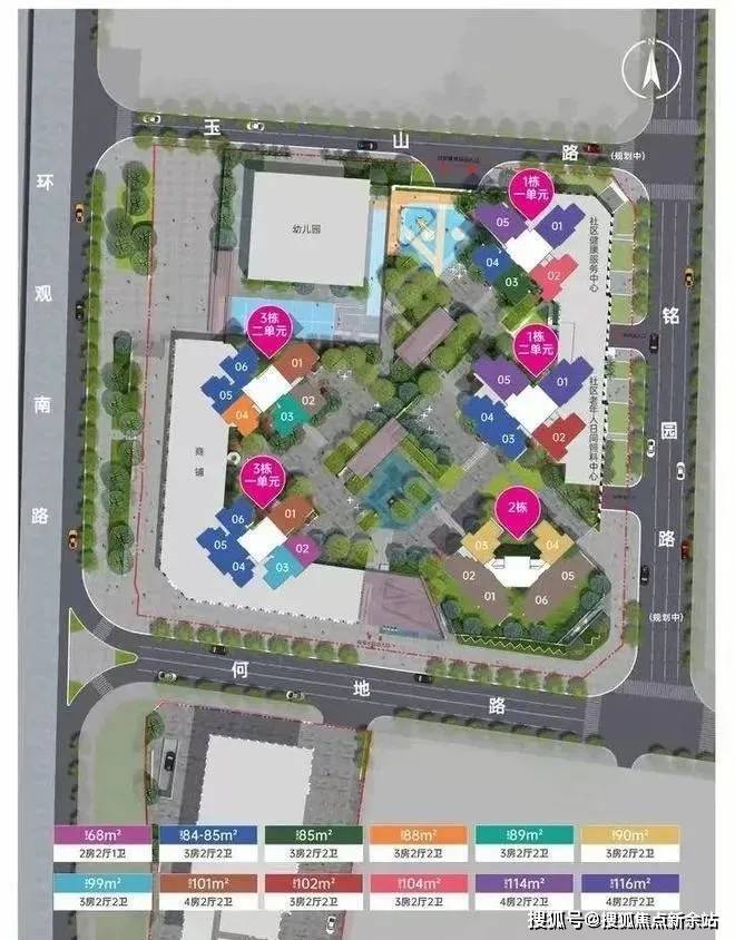 总规划1203户,可售商品房有901套,安置房56套,回迁房246套,1栋1单元3梯5户设计,其余栋数都是3梯6户设计,规划停车位1292个,车位占比约1:1.07。