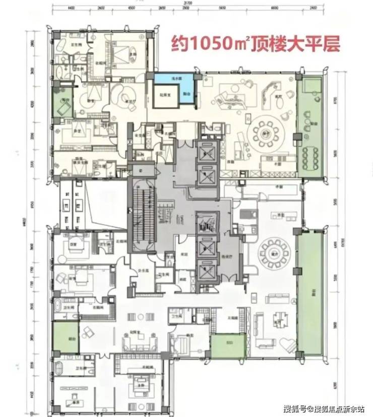 顶楼:约1050㎡整层大平层(仅3套)。