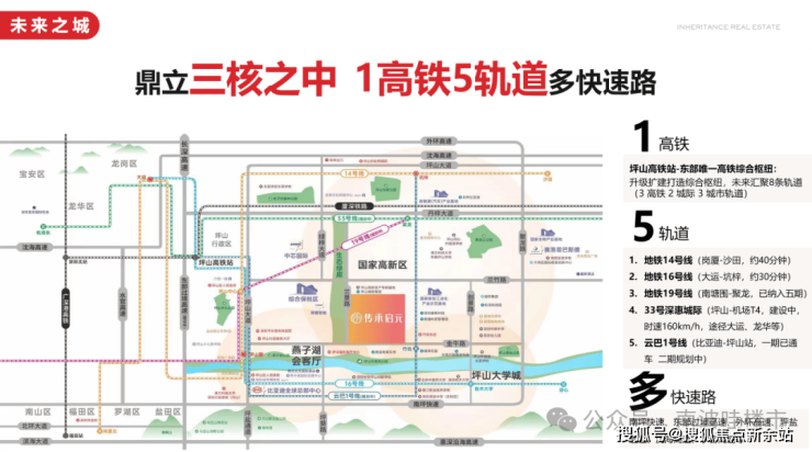 传承启元府,由传承集团开发,位于坪山区龙田街道金牛西路与兰景中路交汇处,项目处于坪山国家高新园区,燕子湖湾区山水新客厅,坪山大学城,之间的一个黄金三角地块,目前周边有奥园翡翠东湾,中海万锦熙岸华庭,澜湾花园等楼盘已经坐落于此,16号地铁线“技术大学站”距离约1.5公里。