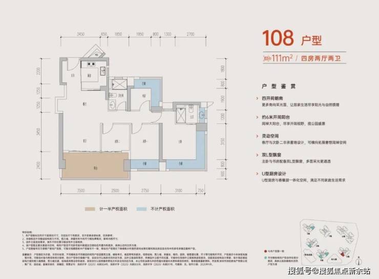 竖厅设计动静分区,约3.5米开间主卧,带独立卫生间,书房L型飘窗,多面采光更通透,U型厨房布局,流线顺畅。