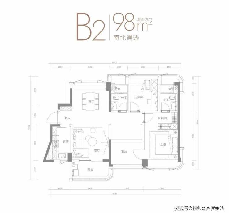98㎡的3房2厅2卫,设计的横厅南北通透格局,进门入户玄关,客厅3.5米开间,四开间朝南,3个卧室分别是3.2米/3米/2.8米的宽度,L型厨房,得房率:75.91%(不含赠送),阳台主朝西南或东南向。深圳【金地峰境誉府】
