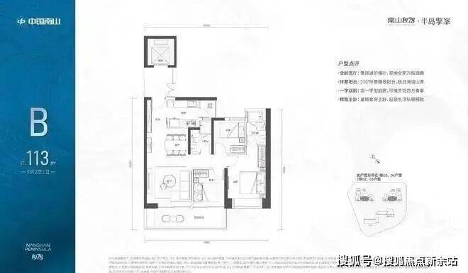113㎡的3房2厅2卫:位于2-30F,全朝南向,带6.5米宽大阳台。
