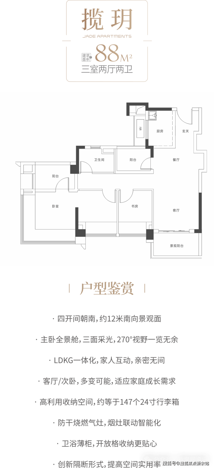 首推建面约88-113㎡精装三四房,采用新规设计,使用率更高:
