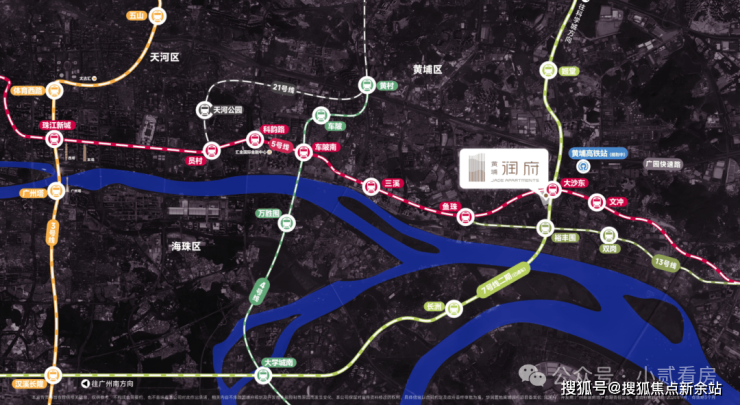 黄埔润府坐拥广州超级换乘站(地铁5/7号线换乘站大沙东站)约300-400米,走路相对也比较近,广州地铁5号线和7号线,承载广州城市发展战略以及粤港澳大湾区城市之间协同发展的重要意义。