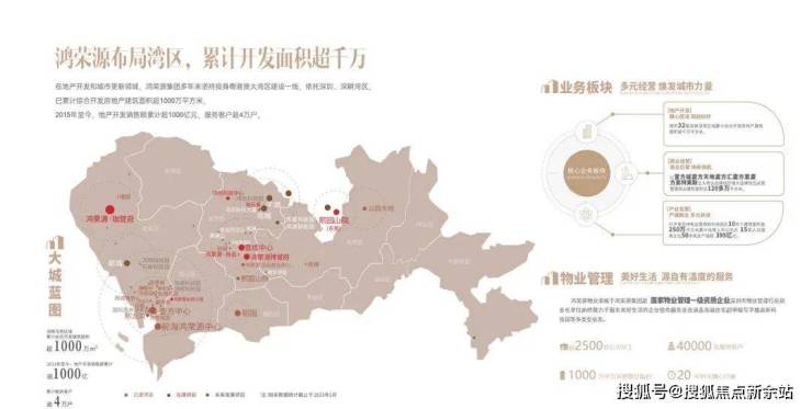 鸿荣源,城市地标缔造者,与城市共荣,汇集鸿荣源32年匠心精铸,传承“誉”系精工品质,携超能标杆钜作,献礼湾区,鸿荣源32年稳健发展、布局大湾区,累计综合开发建筑面积超过1000万㎡。