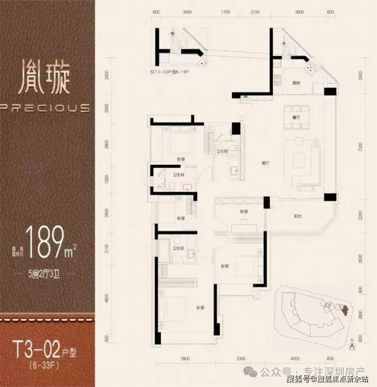 宝安中心【鸿荣源胤旋】189㎡5房2厅3卫,一手尾盘,只交契税,随时签约。