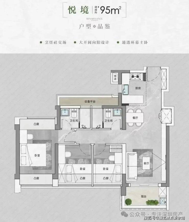 ②最有想象力的约95㎡三房户型,可改4房+1.5卫;