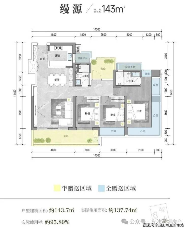 云启源境的户型设计是一大亮点,96%得房率,整个区域内最高。户型约90-143平3-4房,每个户型都极具特点,其中: