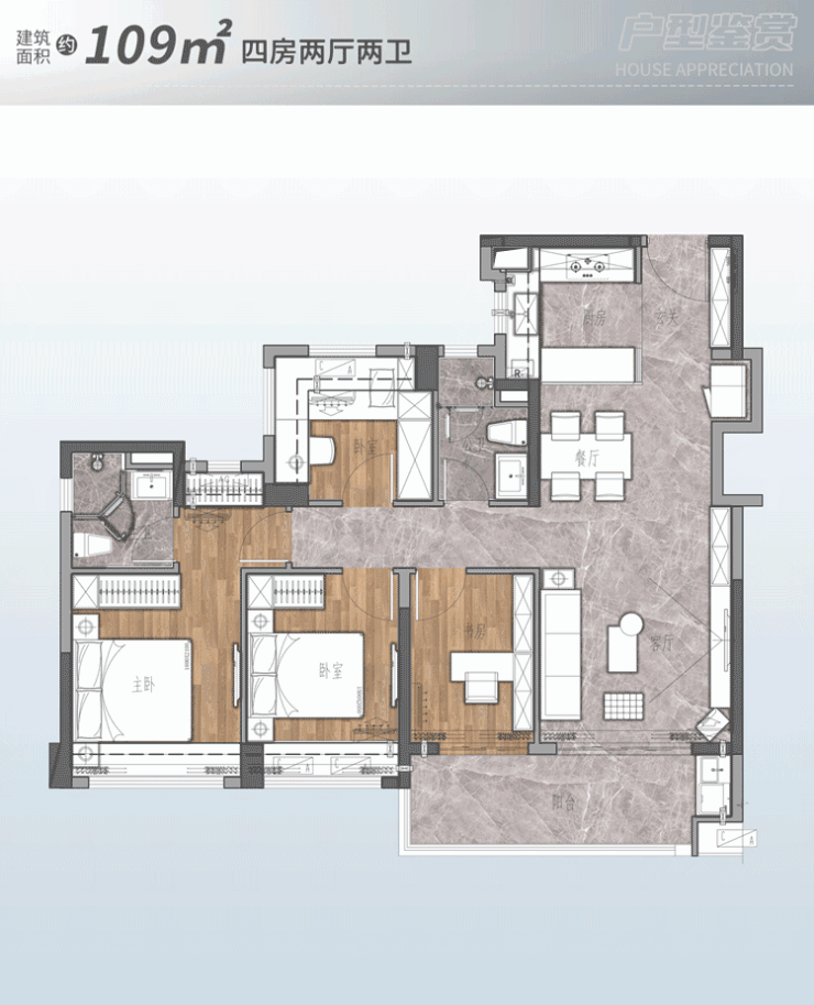 这次1栋高层住宅,还将推出建面约109㎡和建面约119㎡四房,设计也是亮点十足。