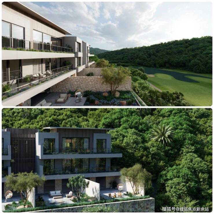 真正能够直面高尔夫果岭景观的在售产品是阿那亚的叠墅。以山谷为经,用山坡作纬,纵横勾勒,每一栋都根据地势高差,择取最优质的景观面。